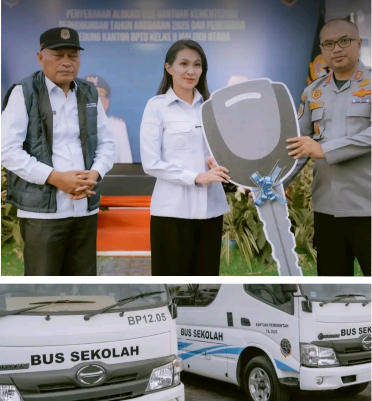 Komitmen Pemerintah Provinsi Maluku Utara dalam meningkatkan akses pendidikan kembali terwujud melalui penyerahan bus sekolah baru. Gubernur Sherly Laos menerima langsung lima unit bus sekolah resmi yang didukung Kementerian Perhubungan, Rabu (24 Desember 2025) di Kantor Balai Pengelola Transportasi Darat (BPTD) Kelas II Maluku Utara.