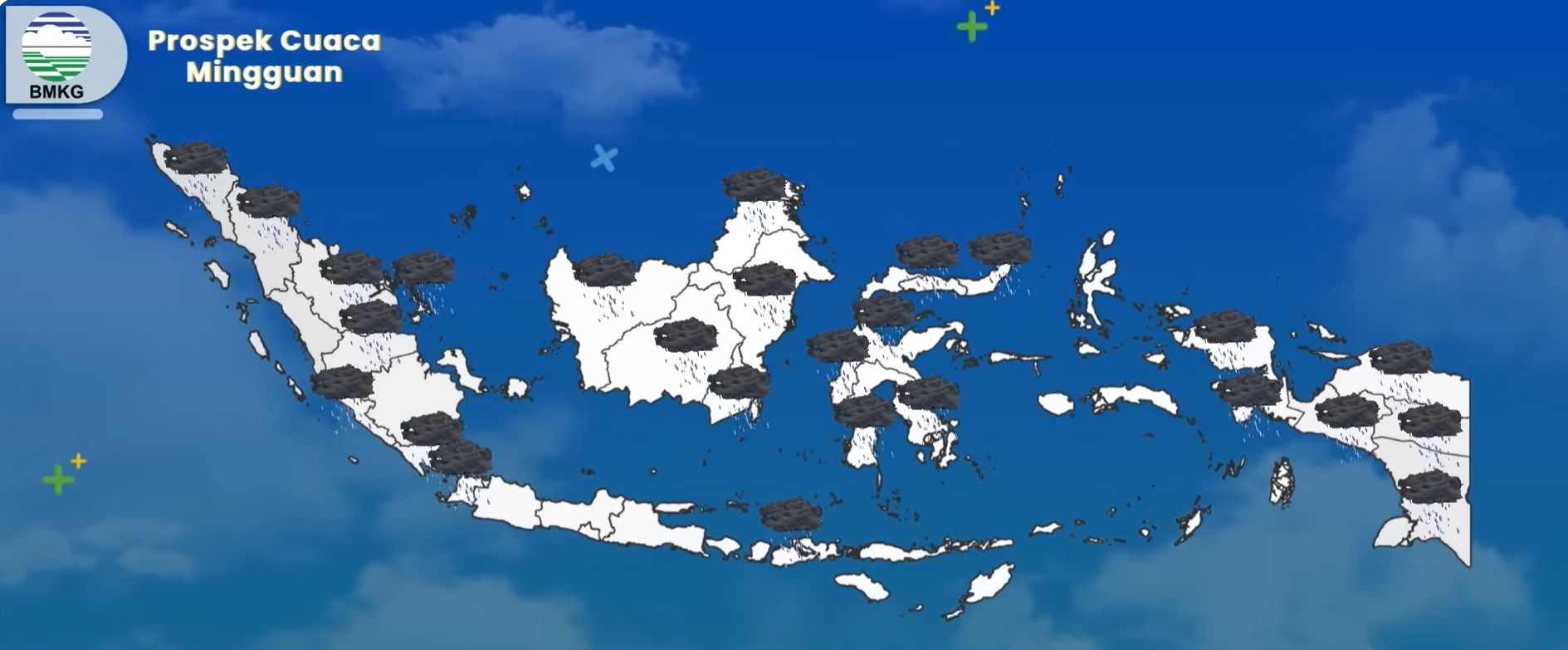 BMKG memprakirakan pada periode 30 Januari–1 Februari 2026, hujan ringan hingga sedang masih mendominasi sebagian besar wilayah Indonesia. Namun, potensi hujan sedang hingga lebat perlu diwaspadai di berbagai wilayah, antara lain Sumatra, Jawa, Bali, Nusa Tenggara, Kalimantan, Sulawesi, serta sebagian besar wilayah Papua.