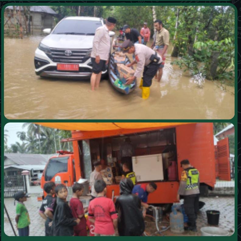 Ia menegaskan bahwa aparat kepolisian bersama unsur Muspika telah turun langsung ke lokasi guna melakukan penanganan cepat di wilayah banjir.
