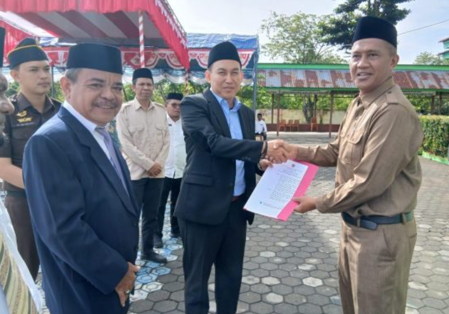 Setelah upacara berakhir, Sekda Ricky bersama Kepala Kantor Kementerian Agama Kabupaten Halmahera Timur secara simbolis menyerahkan izin operasional madrasah kepada sejumlah satuan pendidikan madrasah di wilayah tersebut.