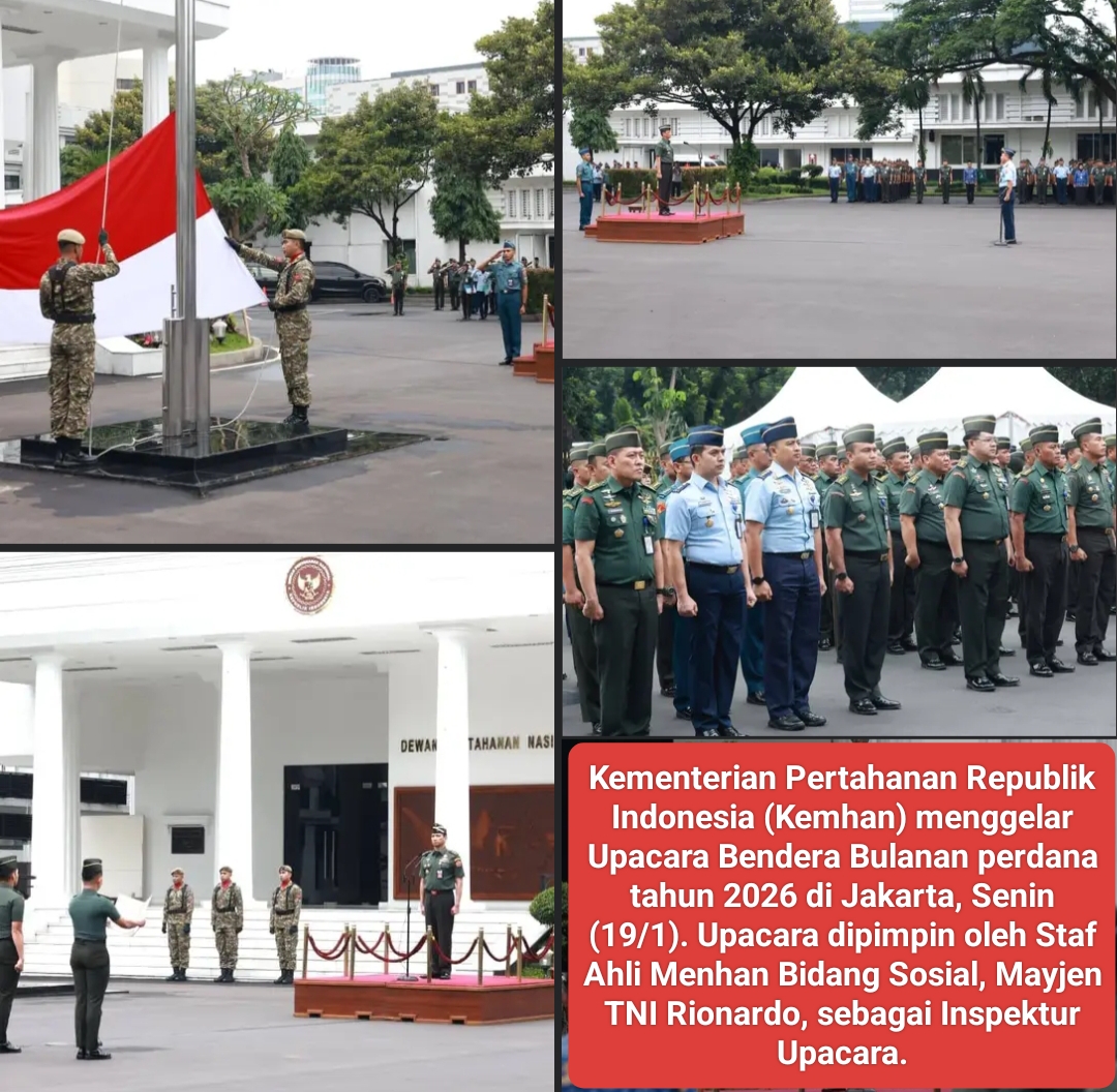Jakarta, 19 Januari 2026 – Kementerian Pertahanan Republik Indonesia (Kemhan) menggelar Upacara Bendera Bulanan perdana tahun 2026 di Jakarta, Senin (19/1). Upacara dipimpin oleh Staf Ahli Menhan Bidang Sosial, Mayjen TNI Rionardo, sebagai Inspektur Upacara.