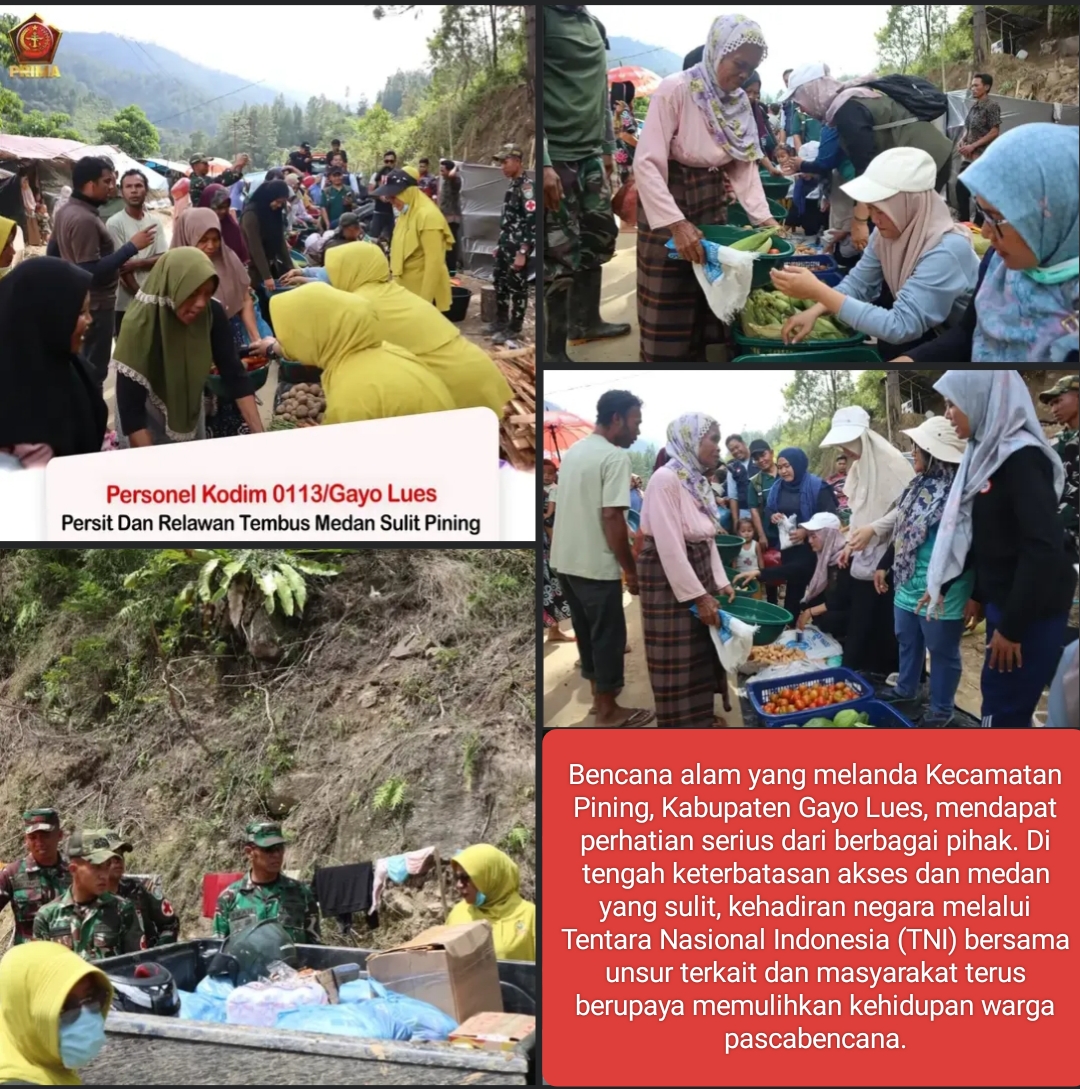 Bencana alam yang melanda Kecamatan Pining, Kabupaten Gayo Lues, mendapat perhatian serius dari berbagai pihak. Di tengah keterbatasan akses dan medan yang sulit, kehadiran negara melalui Tentara Nasional Indonesia (TNI) bersama unsur terkait dan masyarakat terus berupaya memulihkan kehidupan warga pascabencana.