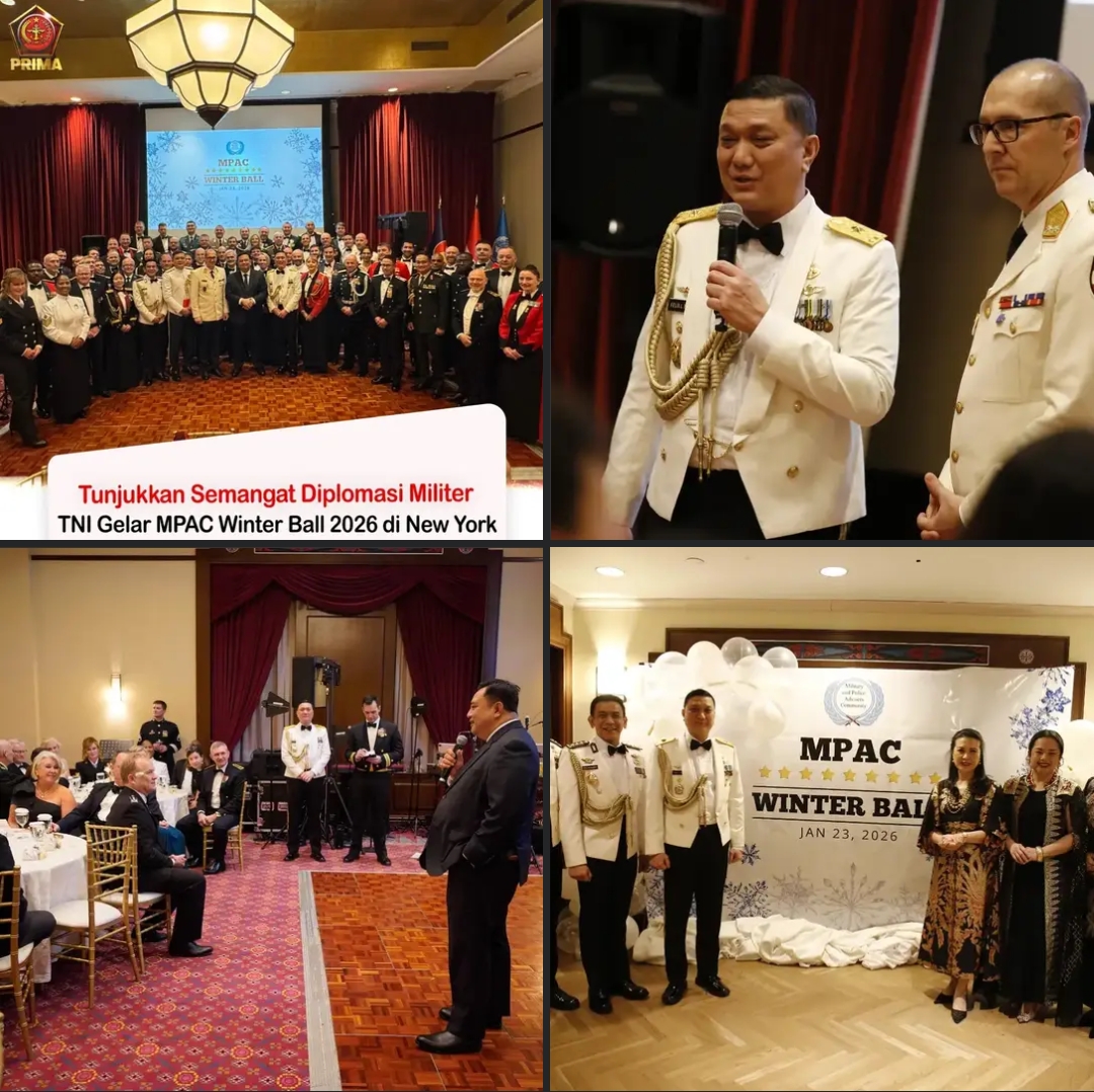New York – Tentara Nasional Indonesia (TNI) terus menunjukkan peran aktifnya dalam diplomasi militer internasional. Hal tersebut diwujudkan melalui penyelenggaraan Military Police Adviser Community (MPAC) Winter Ball ke-5 Tahun 2026 yang digelar di Perutusan Tetap Republik Indonesia (PTRI) untuk Perserikatan Bangsa-Bangsa (PBB) di New York, Jumat (23/1/2026).
